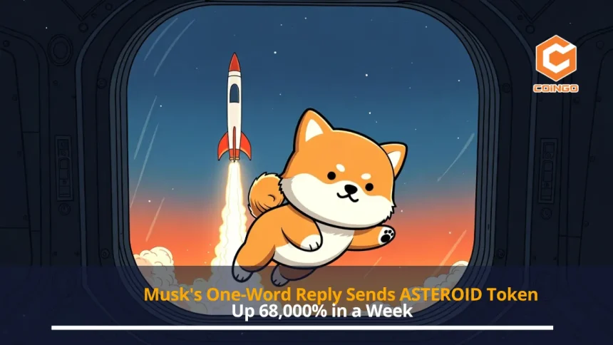 A Solana and Ethereum memecoin called ASTEROID surged more than 68,000% in a single week, crossing a $100 million market cap and generating over $100 million in 24-hour trading volume. The catalyst was not a product launch, exchange listing, or protocol upgrade. It was a one-word reply from Elon Musk on X to a viral post about a 15-year-old cancer patient whose handmade Shiba Inu plush toy flew to space. The story behind the token, and the speed at which the market priced it, captures the mechanics of how narrative-driven speculation works in the memecoin ecosystem.
