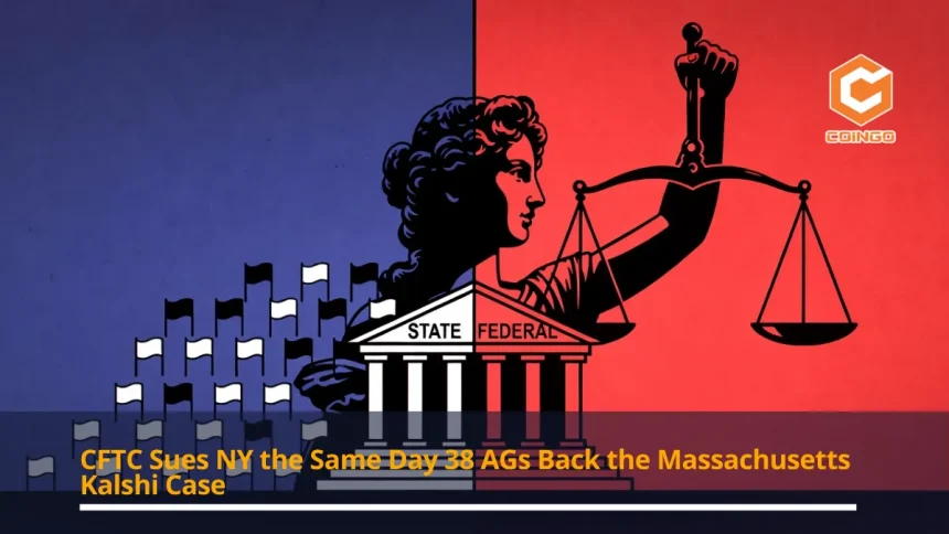 Four states sued by the CFTC in three weeks. One bipartisan brief signed by 38 AGs in a single afternoon. Same fight, two different courtrooms.