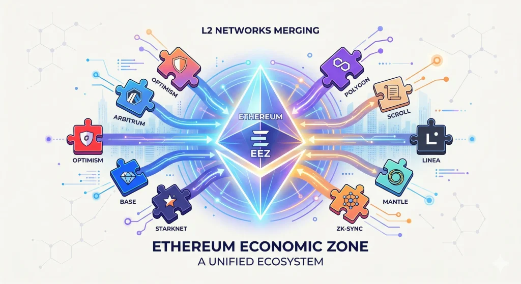 At its core, EEZ focuses on coordination rather than replacement. The initiative is expected to standardize how liquidity, assets, and protocols interact across Layer-2 networks.